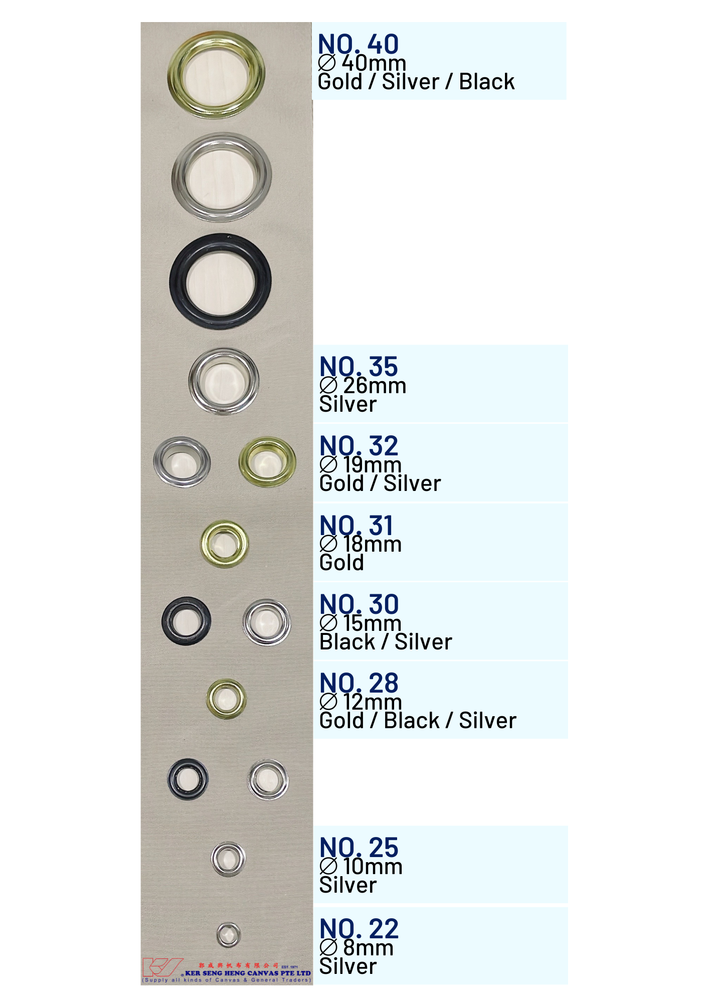 At Ker Seng Heng Canvas, we offer a wide selection of eyelets and grommets in various sizes and colours to suit your specific needs. Whether you require curtain eyelets for hospital or residential use, our experts can recommend the most suitable options for you.